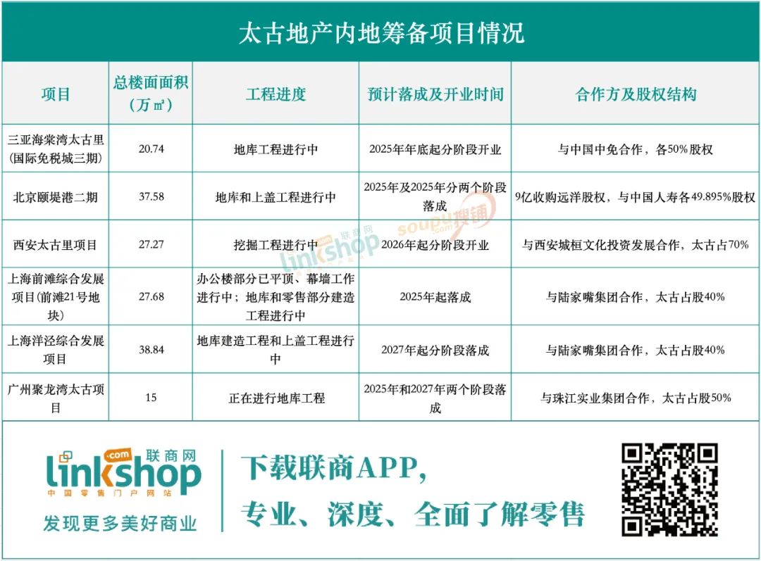 根據(jù)最新財(cái)報(bào),截至2024年8月2日,上述1000元港幣投資計(jì)劃已經(jīng)落地650億港幣,其中內(nèi)地投資約440億港幣。兩年內(nèi),內(nèi)地分別落地了西安、三亞、廣州、上海三個(gè)城市的五個(gè)零售綜合發(fā)展項(xiàng)目。