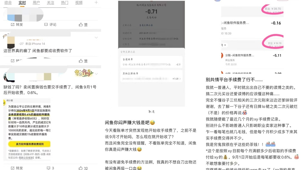 而在微博上,也有不少用戶表示不理解,“我賣個五塊錢的東西還收我三分錢手續(xù)費,還要伺候難纏客戶,拜拜了”“本來出物都要倒貼錢了,還收我0.6%的服務(wù)費”“缺錢了嗎?賣閑置換錢也要交手續(xù)費”……
