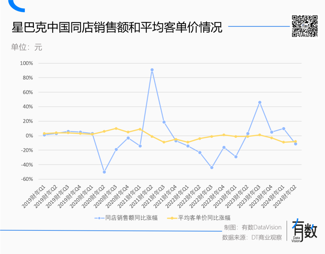 為了挽救中國市場的同店銷售額,星巴克在過去兩年做了不少促銷動作。只是到了今年二季度,促銷也出現了明顯的耐藥性——交易量和客單價雙雙下滑4%、8%,同店銷售額跌了11%。