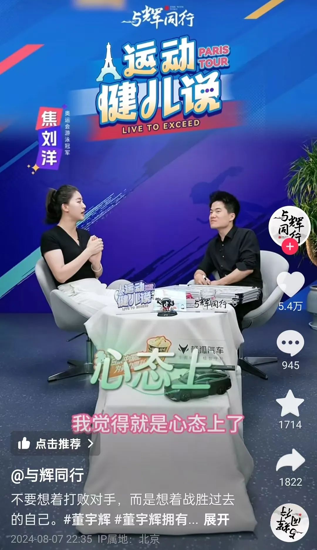 事實(shí)上,在宣告離職后的十多天內(nèi),董宇輝本人一直沒(méi)有直播帶貨,而是投身于《運(yùn)動(dòng)健兒說(shuō)》系列訪談節(jié)目的錄制,采訪了楊倩、郎平、鄧亞萍等多位體育界的杰出人物。