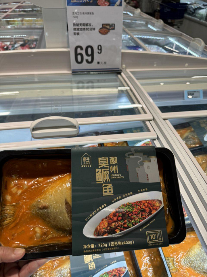 新店還引進了安徽本地知名菜品——徽州臭鱖魚即食料理,微波加熱10分鐘就可以食用,是當?shù)厝耸煜さ呐浞健?/p>