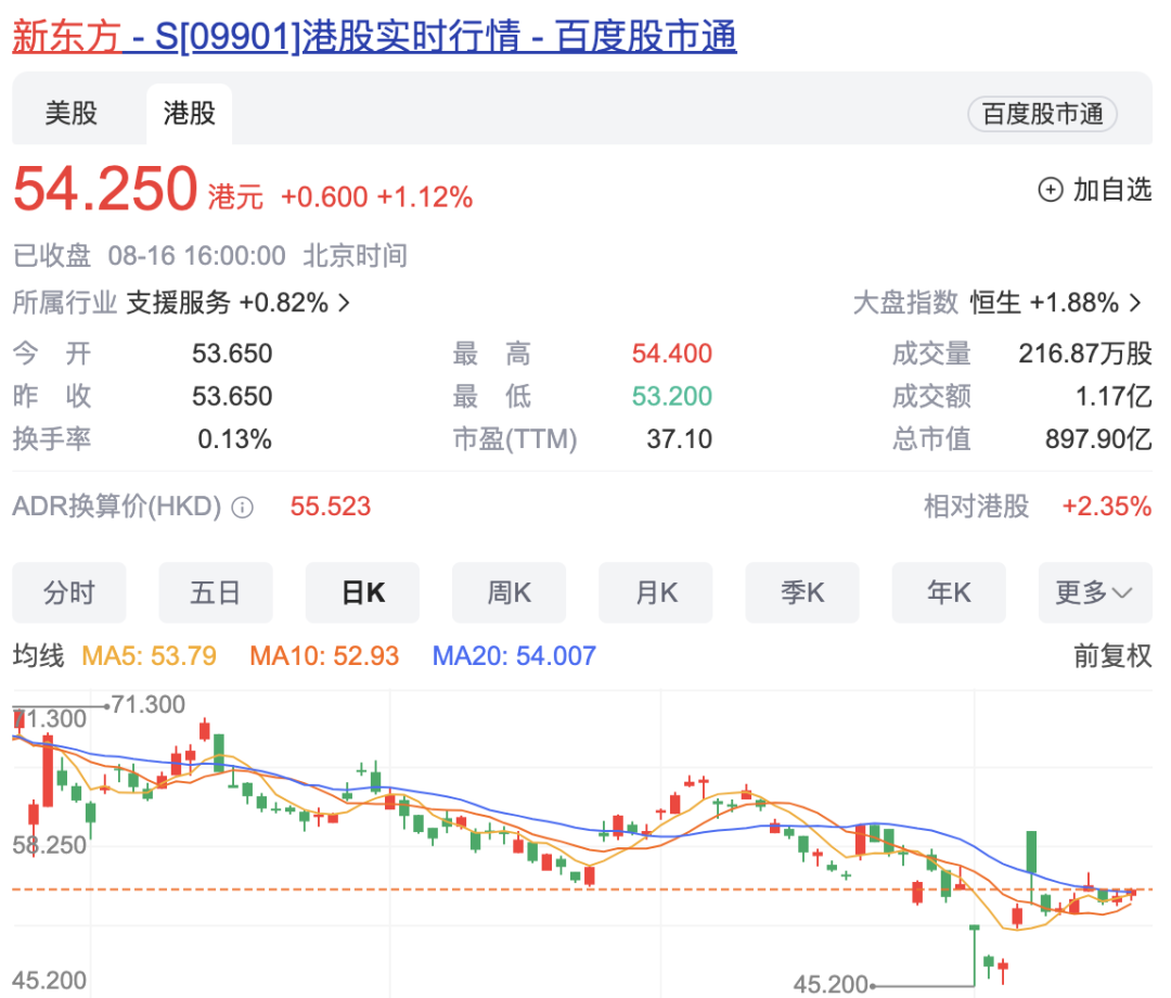 目前,整個新東方集團的教育板塊實際上也在回暖,教育行業(yè)“一哥”俞敏洪并不是只靠董宇輝賺錢,他依舊有自己的基本盤,新東方(指新東方教育科技集團有限公司,非東方甄選)897.9億港元的市值,也主要來自教育業(yè)務。