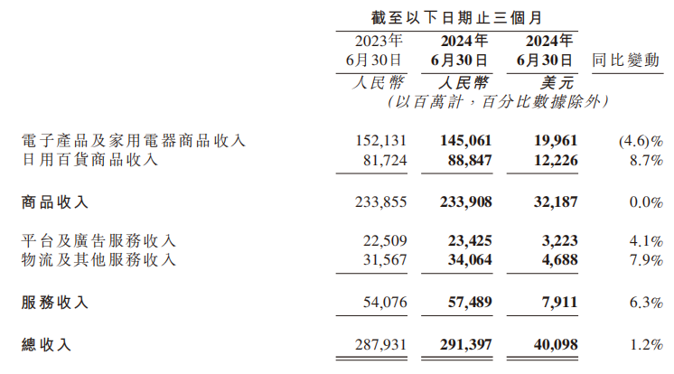 其中,日用百貨類別(尤其是大商超品類)繼續(xù)保持強(qiáng)勁增長(zhǎng),收入同比增長(zhǎng) 8.7%,增速比前幾個(gè)季度進(jìn)一步加快。