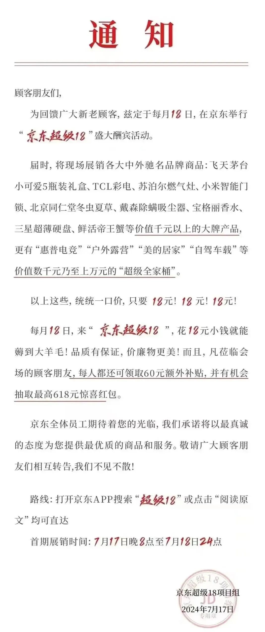 自此以后,京東相繼上線百億補(bǔ)貼、9.9元包郵、降低包郵門檻……到今年7月,推出“超級(jí)18”活動(dòng),將一系列精選商品以遠(yuǎn)低于市場(chǎng)價(jià)的18元售出;8月初,則進(jìn)一步擴(kuò)大了“買貴雙倍賠”服務(wù)的比價(jià)范圍,簡(jiǎn)直就是要和“低價(jià)”死磕到底。