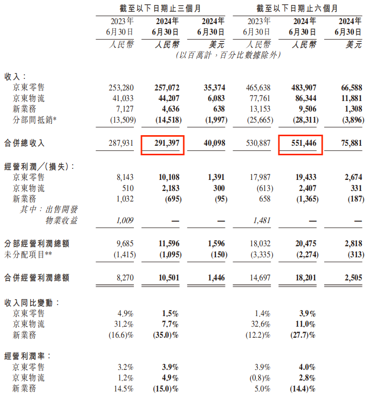 京東發(fā)布2024年第二季度財(cái)報(bào)
