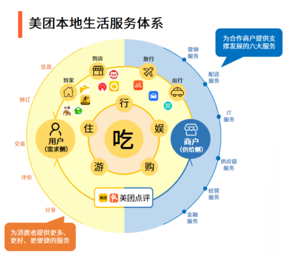 美團的核心業(yè)務(wù)集中在外賣服務(wù),通過整合到店、到家服務(wù),提升了用戶的黏性、使用頻率。