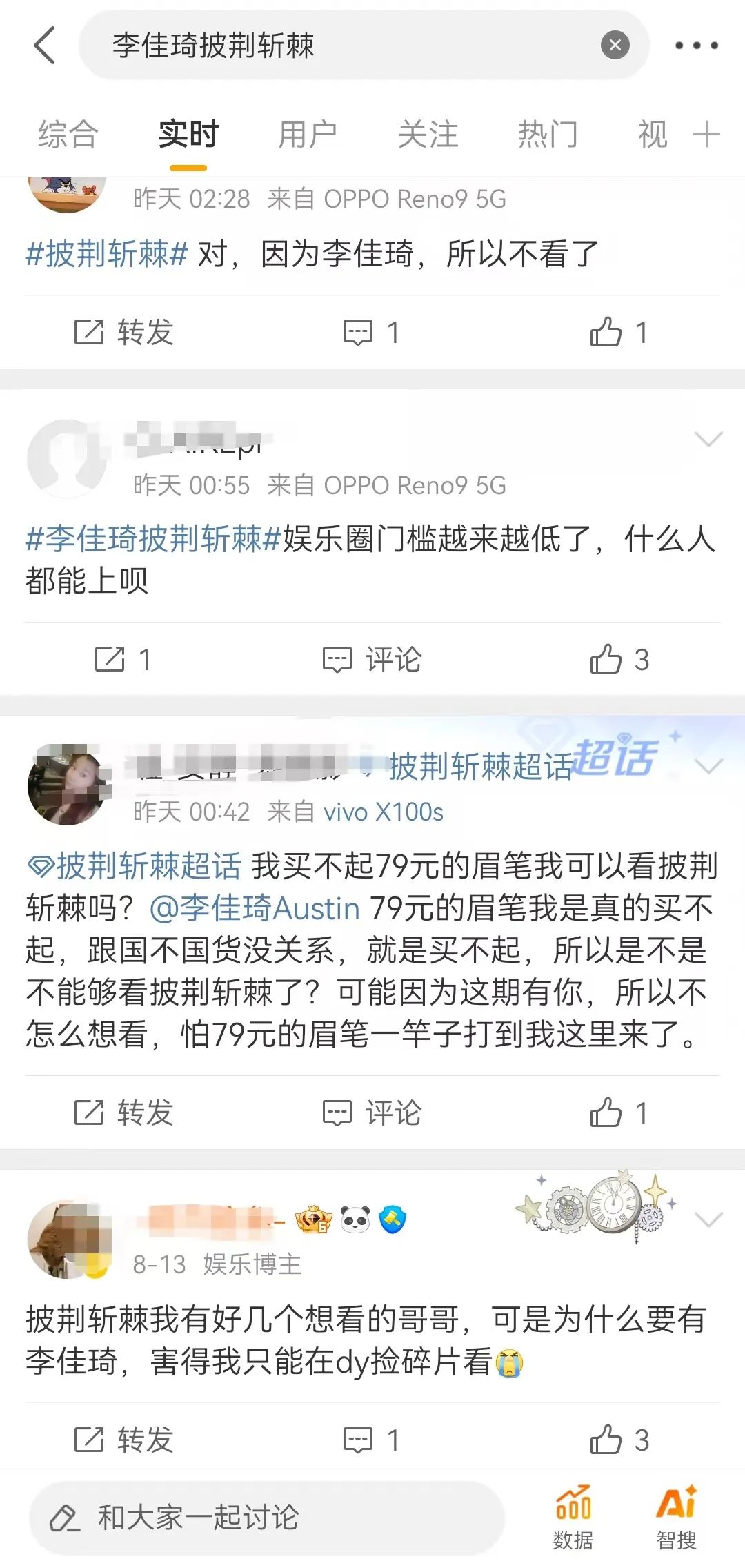 李佳琦這次上唱跳綜藝,并不被網(wǎng)友看好。很多網(wǎng)友在問娛樂圈實在沒人了嗎,怎么請了李佳琦。也有網(wǎng)友用花西子事件嘲諷道:我買不起79塊錢的眉筆,我可以看披荊斬棘嗎。