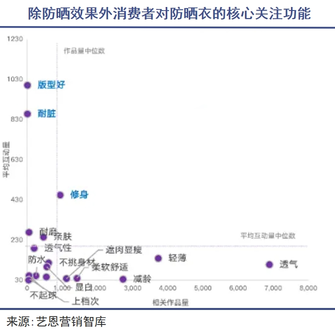 目前,消費(fèi)者對(duì)硬防曬產(chǎn)品的需求主要包括三個(gè)方面:首要的需求是基礎(chǔ)功能,即防曬黑、防曬傷、持久防曬等;此外透氣、清涼等升級(jí)功能及版型、修身等時(shí)尚審美功能同樣是用戶非常重視的因素,防曬衣物已逐漸從功能性服飾向時(shí)尚穿搭單品轉(zhuǎn)變。
