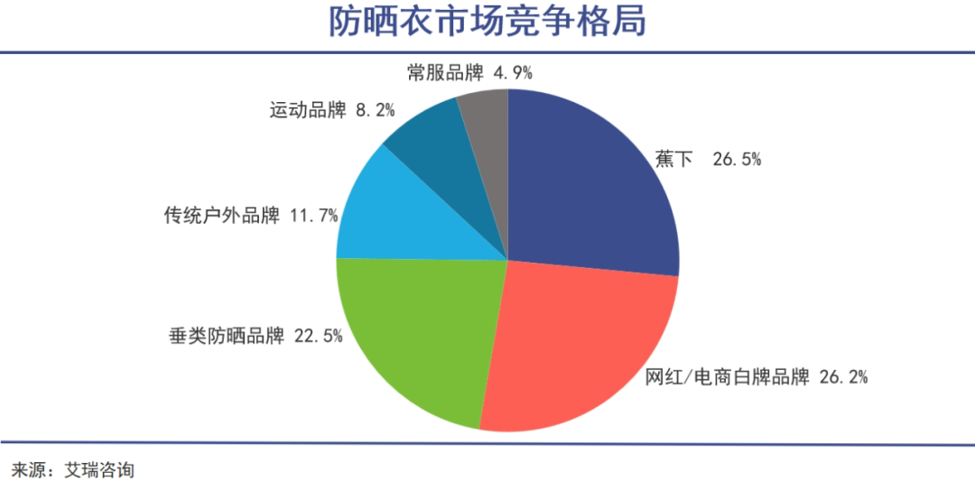 目前,國(guó)內(nèi)進(jìn)入防曬服飾市場(chǎng)的主要有5類玩家,主要包括戶外品牌、垂類防曬品牌、常服品牌、運(yùn)動(dòng)品牌和各類白牌商家,甚至一些原本生產(chǎn)羽絨服的品牌也“跨界”賣(mài)起了防曬衣。