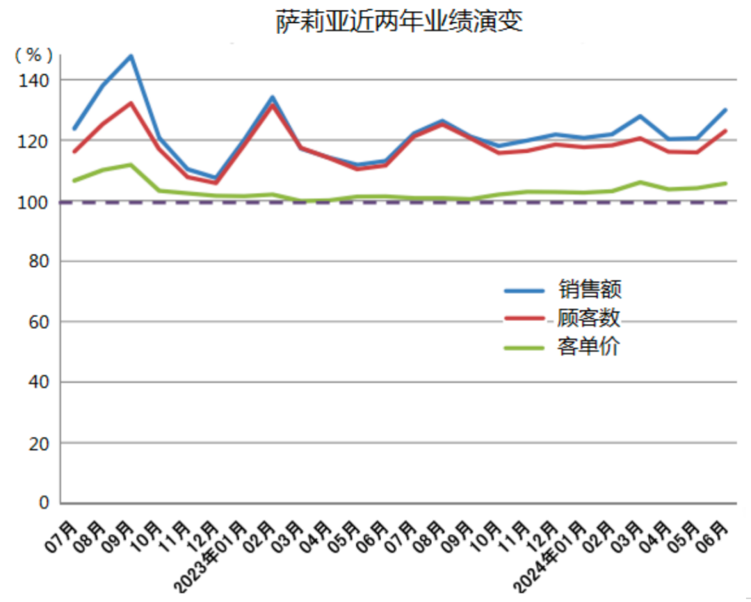 當(dāng)然,薩莉亞的經(jīng)營也有過起伏,2006年10月公布的2005年度銷售額,時隔8年以后取得回升增長,現(xiàn)存店鋪銷售額增長3%,顧客數(shù)增長2.1%,客單價增長0.8%。對于店鋪業(yè)績的持續(xù)低迷的分析,歸因于快速開店過程中,一直以新開店的銷售額增加來彌補現(xiàn)存店鋪虧損,忽視產(chǎn)品質(zhì)量和服務(wù)質(zhì)量,于是加大短板項目的改進,直到菜品質(zhì)量和服務(wù)質(zhì)量提高,才喚醒老顧客認可和銷售額增長。