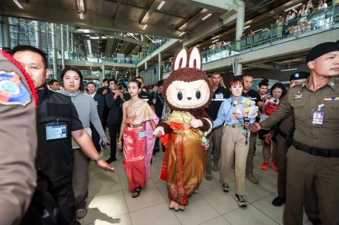 今年7月1日,泰國旅游局和泡泡瑪特聯(lián)合舉辦LABUBU歡迎儀式活動;顒蝇F(xiàn)場聚集大量泰國LABUBU粉絲,甚至有粉絲提前幾小時抵達(dá)機(jī)場接機(jī)。