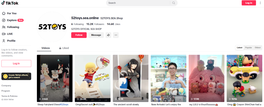 2024年52TOYS加速東南亞市場擴(kuò)展步伐,除泰國已開設(shè)5家品牌店外,馬來西亞店已順利開業(yè)。同時,52TOYS在東南亞電商平臺Lazada、Shoppe開設(shè)品牌官方旗艦店,并通過TIK TOK直播帶貨,形成線上、線下的全渠道布局。