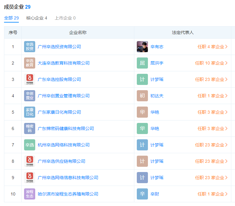 辛巴當(dāng)老板則更早。2018年,當(dāng)大多數(shù)人還沒意識(shí)到直播帶貨的風(fēng)口時(shí),辛巴已經(jīng)有了樹立品牌的意識(shí),提出了“辛有志嚴(yán)選”,并于2019年成立辛橙信息科技公司。2020年,辛巴一口氣成立了廣州辛選投資有限公司、廣州辛選網(wǎng)絡(luò)信息科技有限公司、廣州辛選控股有限公司等六家公司,一部分由他控股,一部分由表妹計(jì)夢(mèng)瑤控股,并在廣州白云區(qū)建立了直播基地,簽約大量主播。