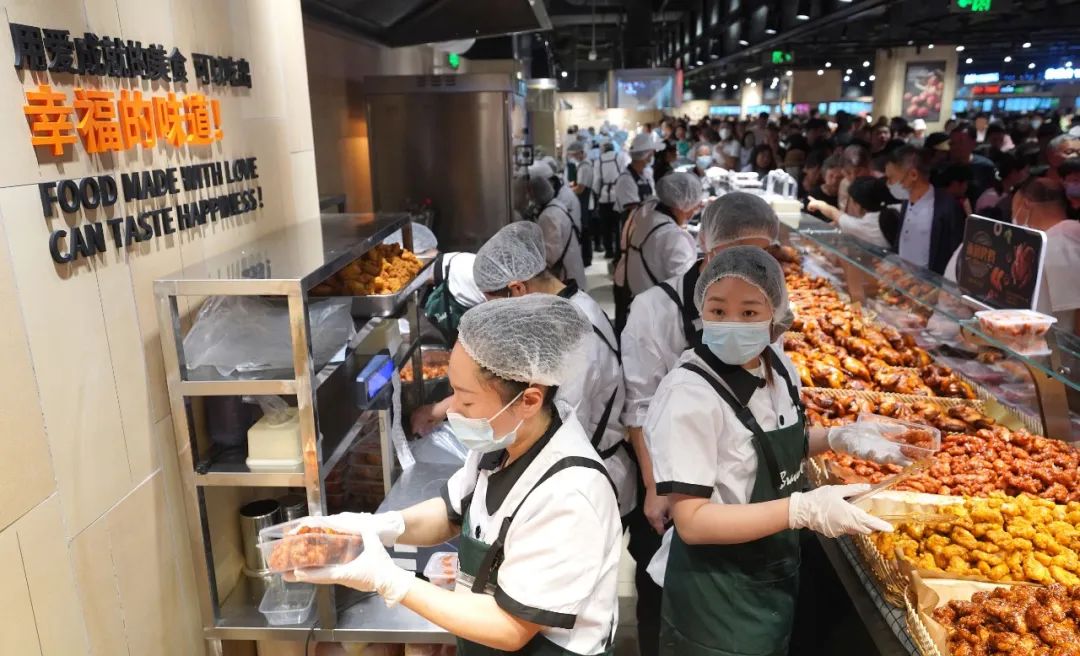 時代廣場店2009年開業(yè),建筑面積6.8萬平方米,營業(yè)面積5.2萬平方米,員工2100人,去年銷售額24億元。天使城店2023年1月開業(yè),去年銷售額十幾億,因為排隊者眾,外面用鐵圍欄圍了差不多600米的長度。