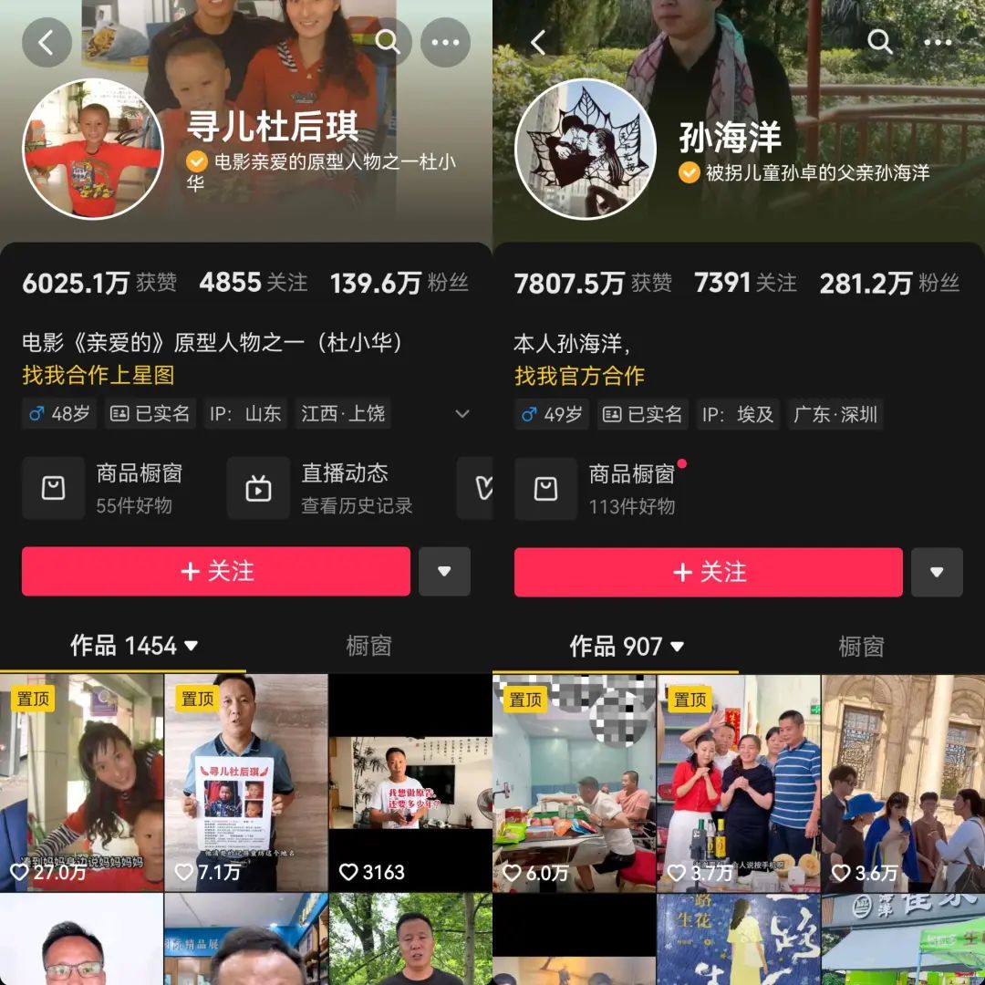 除了解清帥,不少社會(huì)新聞事件中的尋親主人公,都陸續(xù)開(kāi)啟了帶貨:電影《失孤》的原型郭剛堂,電影《親愛(ài)的》的原型之一孫海洋和其長(zhǎng)女孫悅,同為《親愛(ài)的》原型之一的杜小華……