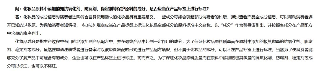 圖截自國家藥監(jiān)局發(fā)布的《化妝品監(jiān)督管理常見問題解答(五)》