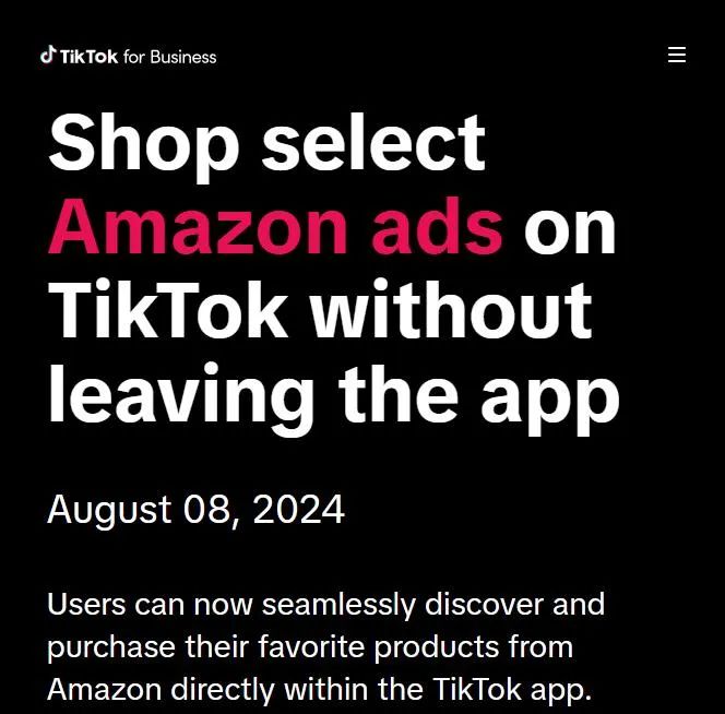 緊隨其后,亞馬遜又宣布其與TikTok的合作,預(yù)示著短視頻與電商的深度融合將成為新的趨勢。