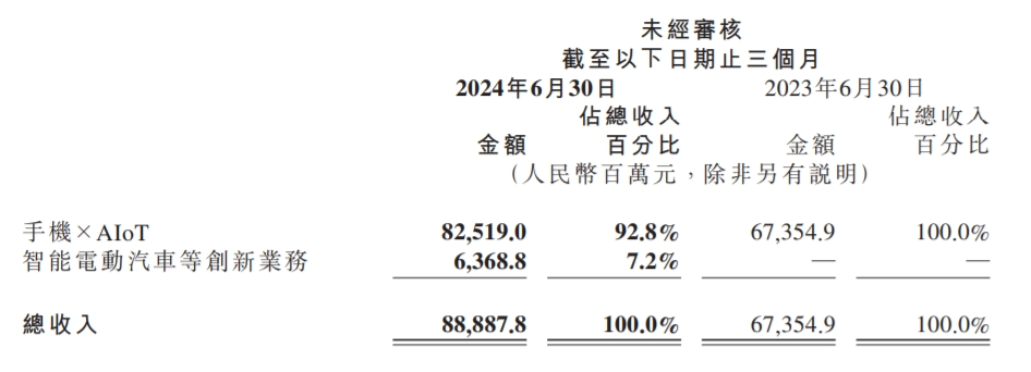 本季度小米集團(tuán)實(shí)現(xiàn)營(yíng)收889億元,同比增長(zhǎng)32%;經(jīng)調(diào)整后凈利潤(rùn)為62億元,增長(zhǎng)達(dá)到了20.1%。這樣的增長(zhǎng)從收入端來(lái)看是傳統(tǒng)業(yè)務(wù)和汽車業(yè)務(wù)的雙增長(zhǎng)一起實(shí)現(xiàn)的;其中,手機(jī)X AIoT業(yè)務(wù)實(shí)現(xiàn)營(yíng)收825億元,同比增長(zhǎng)22.5%;汽車及創(chuàng)新業(yè)務(wù)實(shí)現(xiàn)營(yíng)收63.7億元,占比總營(yíng)收7.2%。