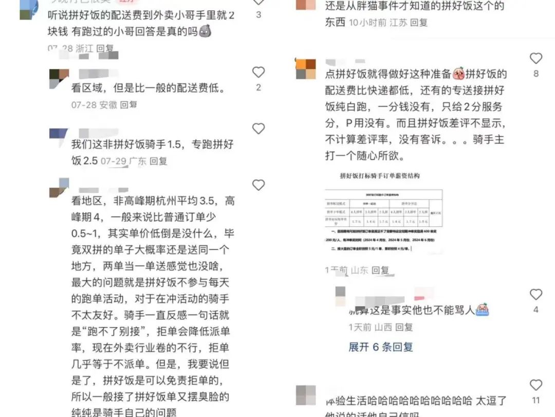 而且,因為拼好飯的單價低,分配到騎手手里每單的單價更低了。