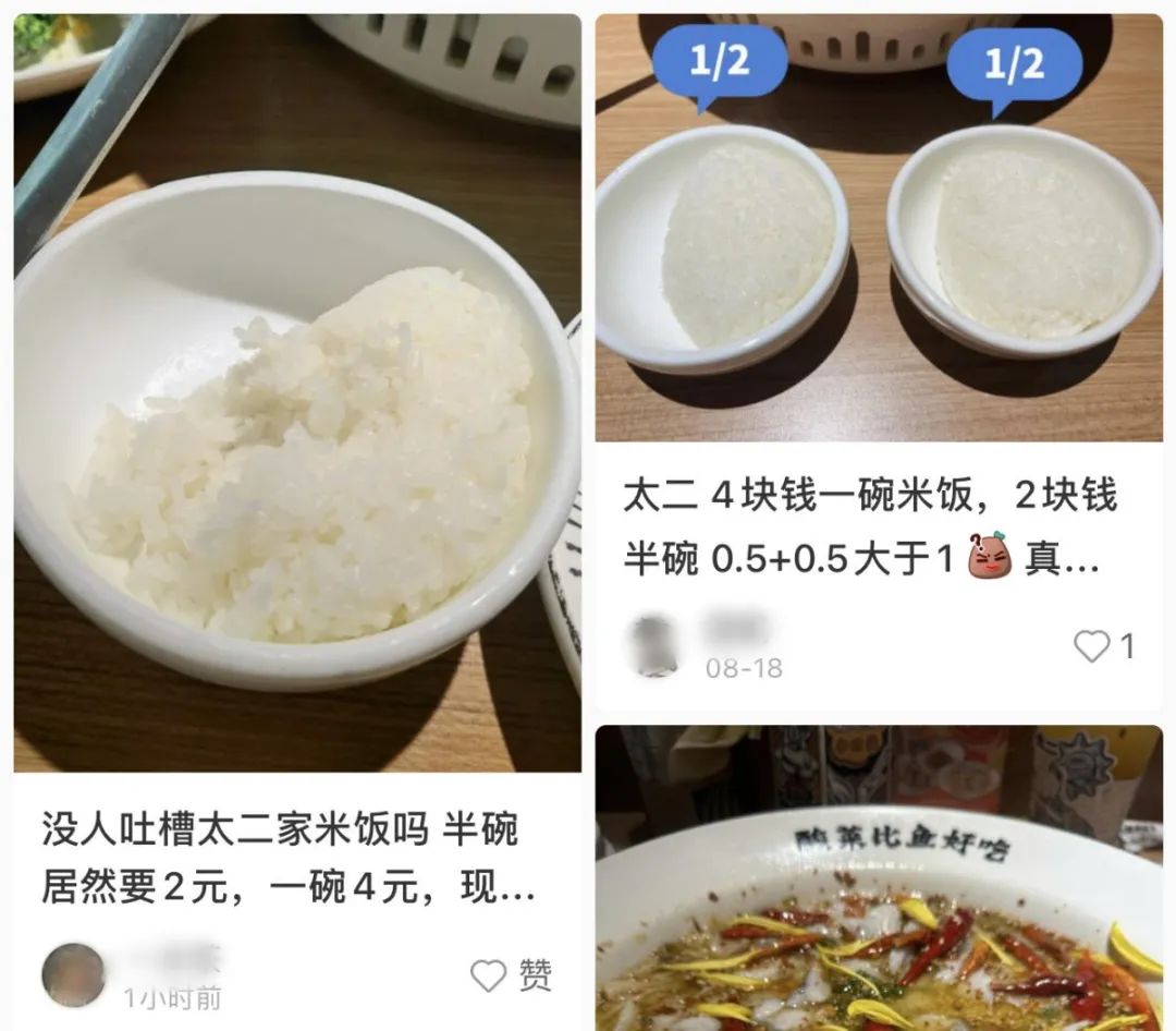 在此過程中,對(duì)于太二米飯5元一碗的價(jià)格,部分網(wǎng)友覺得貴,有的還發(fā)帖吐槽。隨著消費(fèi)環(huán)境變得低迷,此類吐槽越發(fā)洶涌。