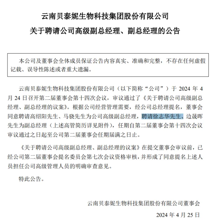 公開信息顯示,徐志華于2023年10月從獅頭股份總裁任上辭職之后,加入貝泰妮集團,擔任公司總裁營銷助理,并于今年4月升任貝泰妮副總經理。