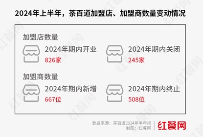 從加盟商變動(dòng)情況看,茶百道上半年新增了667名加盟商,同時(shí)也終止了與508名加盟商的合作。