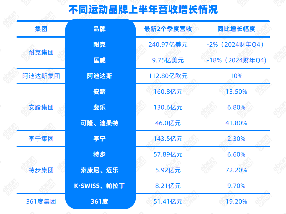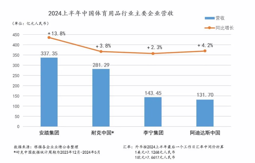 2024年上半年,安踏集團主品牌——安踏品牌營收達160.8億元,同比增長13.5%、占集團營收48%的同時,以單品牌之力超越李寧集團和阿迪中國。