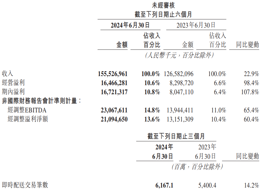 短短半年,美團(tuán)的營收超過1555億,同比增長22.9%。其中第一季度共計營收732.76億,第二季度營收822.5億,均保持了穩(wěn)定同比增長。經(jīng)調(diào)整后利潤近211億,同比增長60.4%。