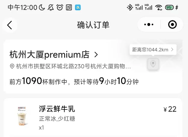 紅餐網(wǎng)于8月28日中午12點(diǎn)左右在Bonjour的點(diǎn)單小程序看到,杭州大廈premium店“前方1090杯制作中”,預(yù)計(jì)等待9小時(shí)10分鐘。5個(gè)多小時(shí)后,小程序顯示前方依然有500多杯正在制作中。