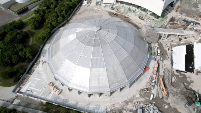 北端的西岸穹頂藝術(shù)中心,原為上海水泥廠的「預(yù)均化庫」遺址,未來將成為舉辦藝術(shù)展覽、音樂會、舞劇、體育賽事等各類活動的理想場館。