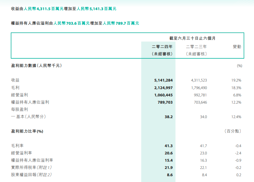 8月12日,361度正式對外公布2024年上半年財(cái)報。數(shù)據(jù)顯示,今年上半年361度營收51.4億,同比增長19.2%;權(quán)益持有人應(yīng)占溢利7.9億,同比增長12.2%,毛利率為41.3%。