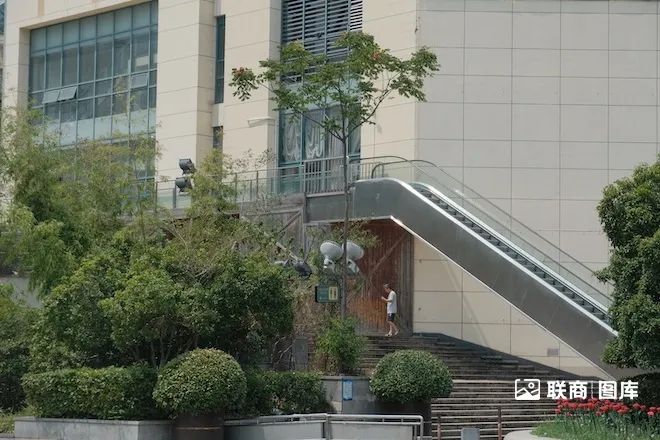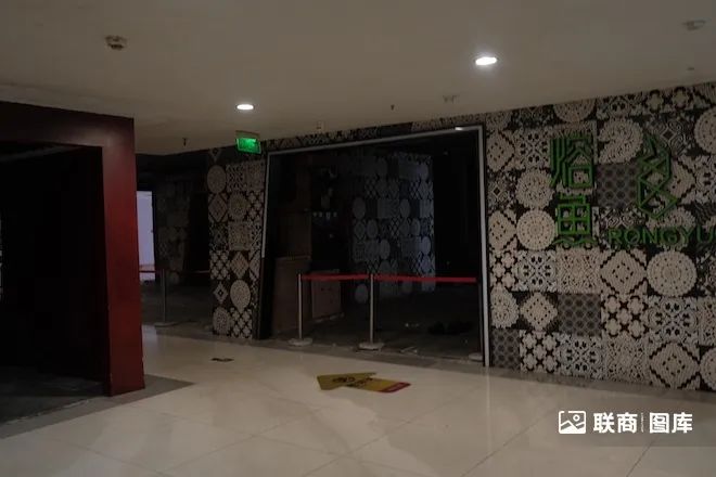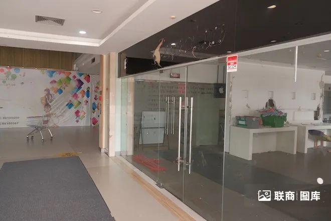 商場(chǎng)以前的中庭、扶梯都被拆除,如今都圍擋了。因此通往二樓只能從外面的步梯走上去(外面的扶梯已經(jīng)停了)。