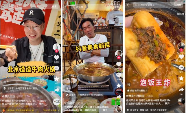 紅餐網(wǎng)了解到,近期,針對火鍋品類,抖音本地生活發(fā)起了一場探店形式的活動,通過多位美食新探發(fā)掘并帶火了一批渣渣牛肉火鍋、酸辣牛雜火鍋等店鋪,繼而帶動了不少本地達人跟進探店。本次活動的流量還為品牌們帶來了收益;顒悠陂g,抖音本地生活渣渣牛肉品類的支付gmv同比增長了20%。