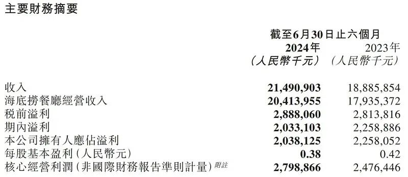 回看海底撈最新財(cái)報(bào),2024年上半年,公司實(shí)現(xiàn)營(yíng)業(yè)收入214.91億元,較上年同期的188.86億元增長(zhǎng)13.8%,來自海底撈餐廳的營(yíng)收為204億元,較上年同期的179.35億元增長(zhǎng)13.8%。