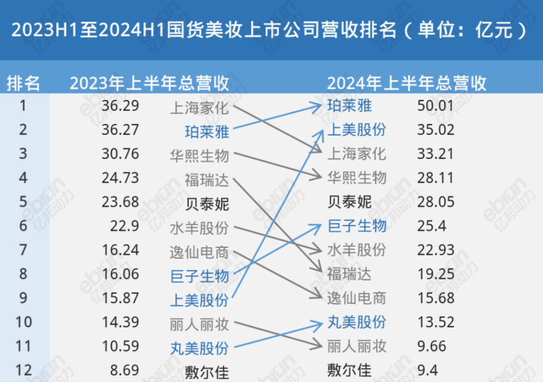 億邦動(dòng)力統(tǒng)計(jì)顯示,截至8月31日發(fā)布財(cái)報(bào)的12家國(guó)貨美妝上市公司,總營(yíng)收為290.24億元,相比于2023年同期的256.47億元,同比增長(zhǎng)13.17%。