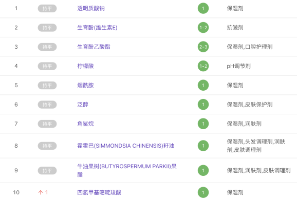美麗修行大數(shù)據(jù)顯示,在2024年上半年(1-6月)環(huán)比2023年下半年(7-12月)的對比中,市場上的化妝品熱門成分榜單變化并不明顯,前9名包括透明質(zhì)酸鈉、維生素E、煙酰胺、泛醇等原料熱度持續(xù),依克多因、波色因、積雪草這些傳統(tǒng)熱門成分的熱度還在持續(xù)提升。