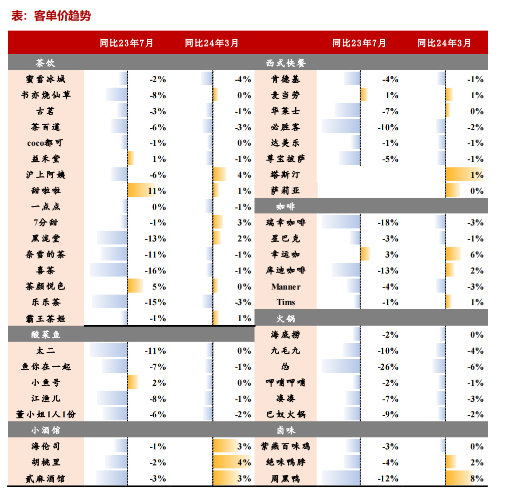 根據(jù)華創(chuàng)證券,從上半年整體來(lái)看,一線城市社零增速大幅低于全國(guó)平均水平。上半年全國(guó)餐飲收入增速為7.9%。北京為-3.5%、上海為-3.6%、廣州為 3.0%、深圳為 1.3%,全國(guó)增速高于一線均值 8.6 百分點(diǎn),這一差距是 2014 年以來(lái)最大的一年。