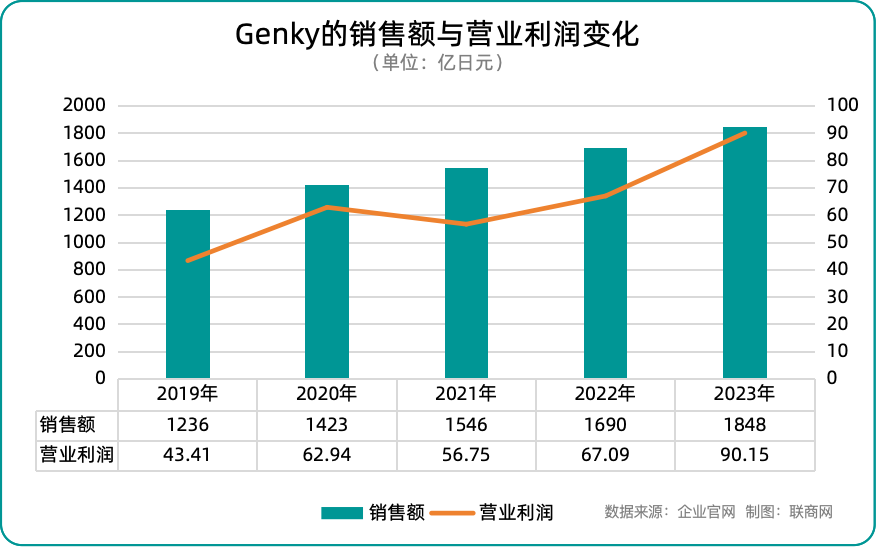 從結(jié)果上來(lái)看,過(guò)去五年,GENKY表現(xiàn)出穩(wěn)定的增長(zhǎng)趨勢(shì),銷(xiāo)售額年均增長(zhǎng)率約為10.6%。利潤(rùn)率也從2019年的3.51%上升到2023年的4.88%,表明公司在擴(kuò)大規(guī)模的同時(shí)提高了運(yùn)營(yíng)效率。最近一財(cái)年的銷(xiāo)售額和利潤(rùn)均創(chuàng)新高,發(fā)展前景十分明朗。