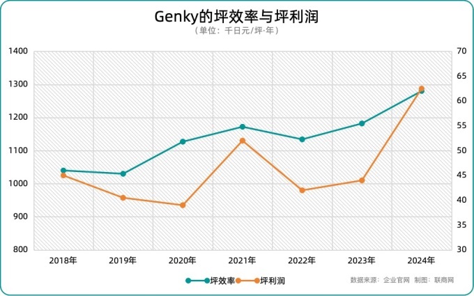 隨著GENKY標(biāo)準(zhǔn)店的網(wǎng)絡(luò)逐步擴(kuò)大,其門(mén)店的單位面積效率(即每坪的銷(xiāo)售額,或每3.3平方米)和單位面積的營(yíng)業(yè)利潤(rùn)均得到了顯著提升。