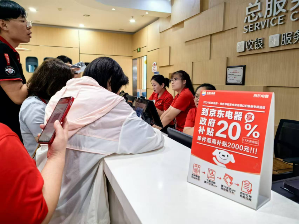 隨著全國各地相繼落實“國補”政策,推動消費品以舊換新,進一步激活消費市場。京東MALL、京東電器城市旗艦店、京東五星電器等京東線下門店承接補貼政策,優(yōu)化服務流程并提升效率,讓真金白銀的優(yōu)惠直達消費者。