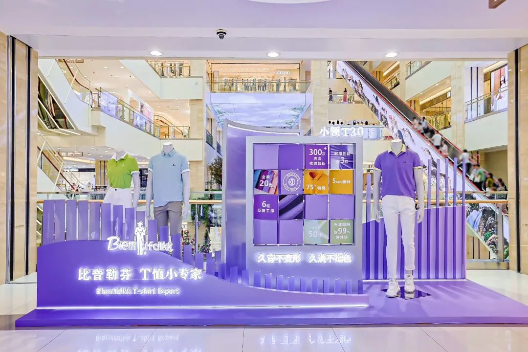 2018年開(kāi)始,比音勒芬先后簽下楊爍、江一燕、吳尊、胡一天、馮珊珊等作為品牌代言人,還與張晚意、趙今麥、陳靖可、任敏等一眾在年輕群體中擁有影響力的偶像合作。還開(kāi)始做影視劇植入,一系列向流行靠攏的舉措,被品牌稱為“開(kāi)啟星時(shí)代”。2022年,謝秉政進(jìn)一步拓展,將錨點(diǎn)放在了品類上,聚焦運(yùn)動(dòng)休閑、商務(wù)會(huì)談都不可或缺的“T恤”上,并打出了“T恤小專家”新系列。
