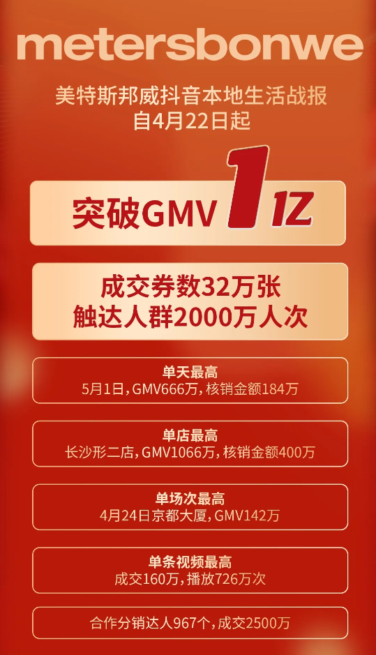 業(yè)績表現(xiàn)不佳的美特斯邦威,進軍本地生活業(yè)務的意圖不難猜測。一來可以獲得更多流量,二來,或許能在業(yè)績上迎來突破。據(jù)媒體報道,今年一季度,抖音本地生活GMV突破了1000億元,同比翻倍增長,已成為本地生活領域一位重量級選手。美特斯邦威選擇與抖音牽手,未嘗不是一個好選擇。而事實證明,美特斯邦威部署本地生活領域,也確實取得了一定的成績。