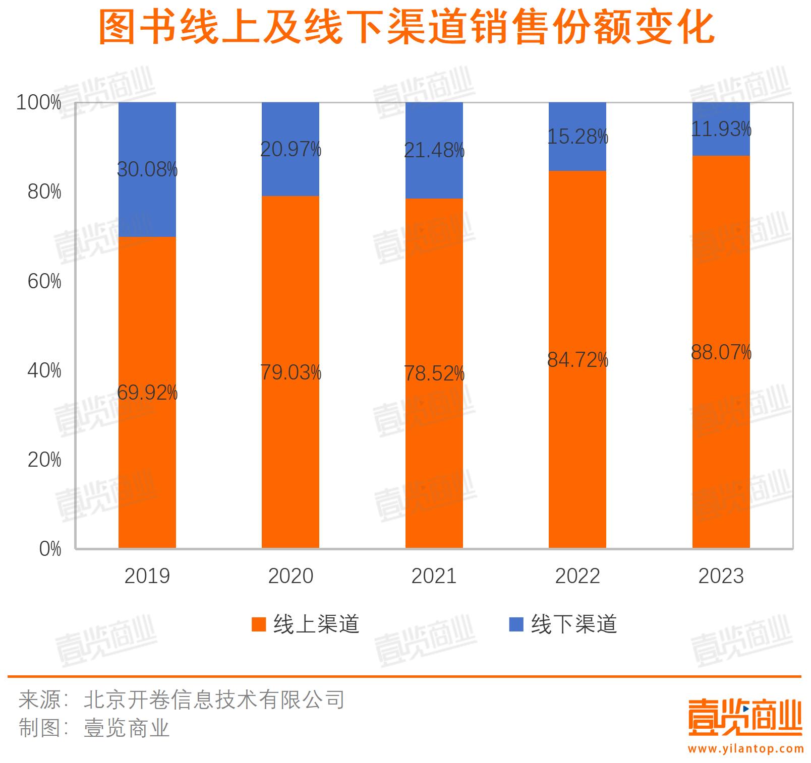 具體到線下渠道,表現(xiàn)也遜色于線上。從2019年開始,線上渠道就在不斷擠壓線下渠道的生存空間。北京開卷發(fā)布的數(shù)據(jù)顯示,2023年,短視頻電商已經(jīng)成為僅次于平臺電商的第二大圖書銷售渠道,實(shí)體書店的市場份額進(jìn)一步下降至11.93%,僅占1成多,電商平臺已經(jīng)成為圖書銷售的“主力軍”。