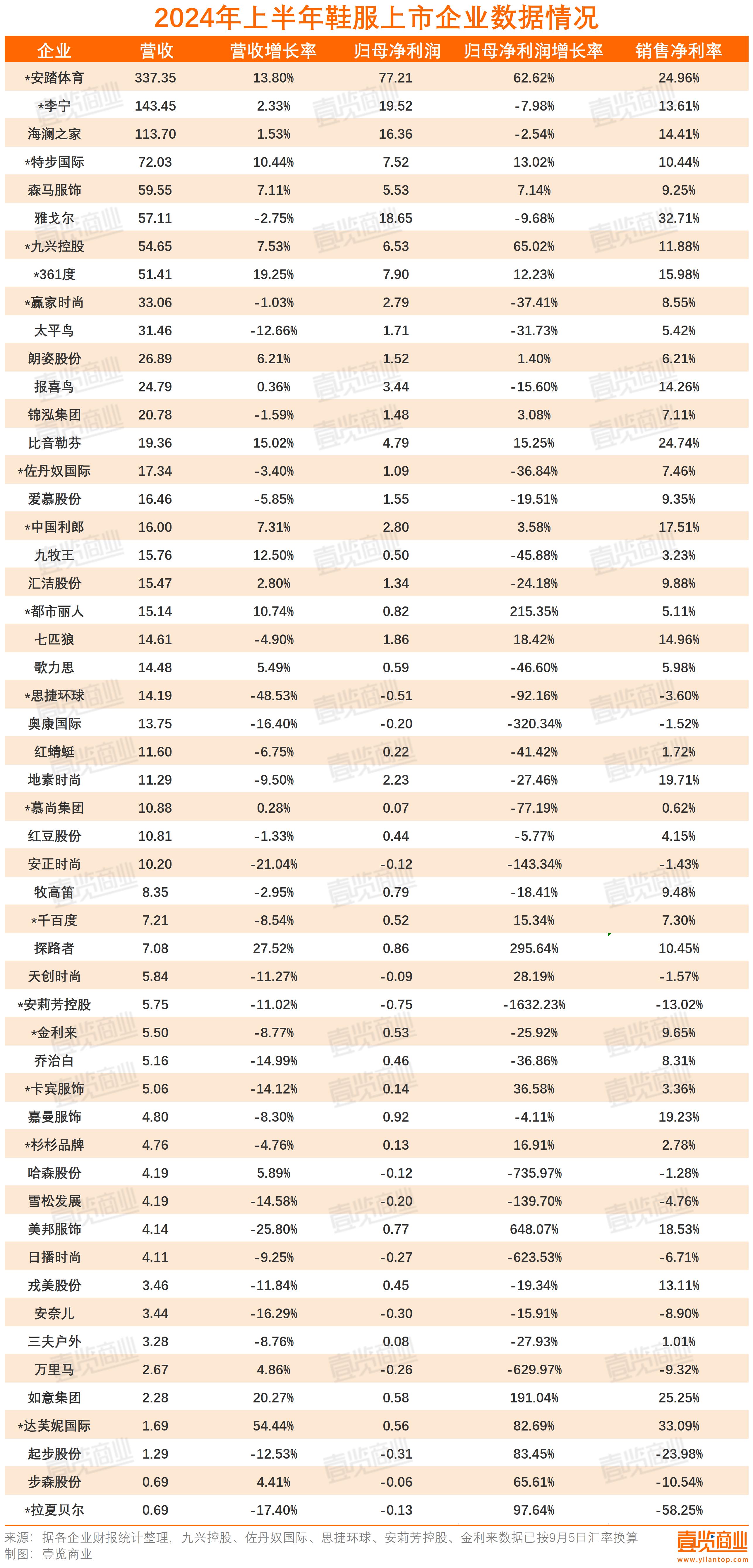 截至9月,主要的上市鞋服企業(yè)都已發(fā)布了2024年半年報,壹覽商業(yè)統(tǒng)計了52家上市鞋服企業(yè)的上半年業(yè)績,看看鞋服行業(yè)表現(xiàn)如何。