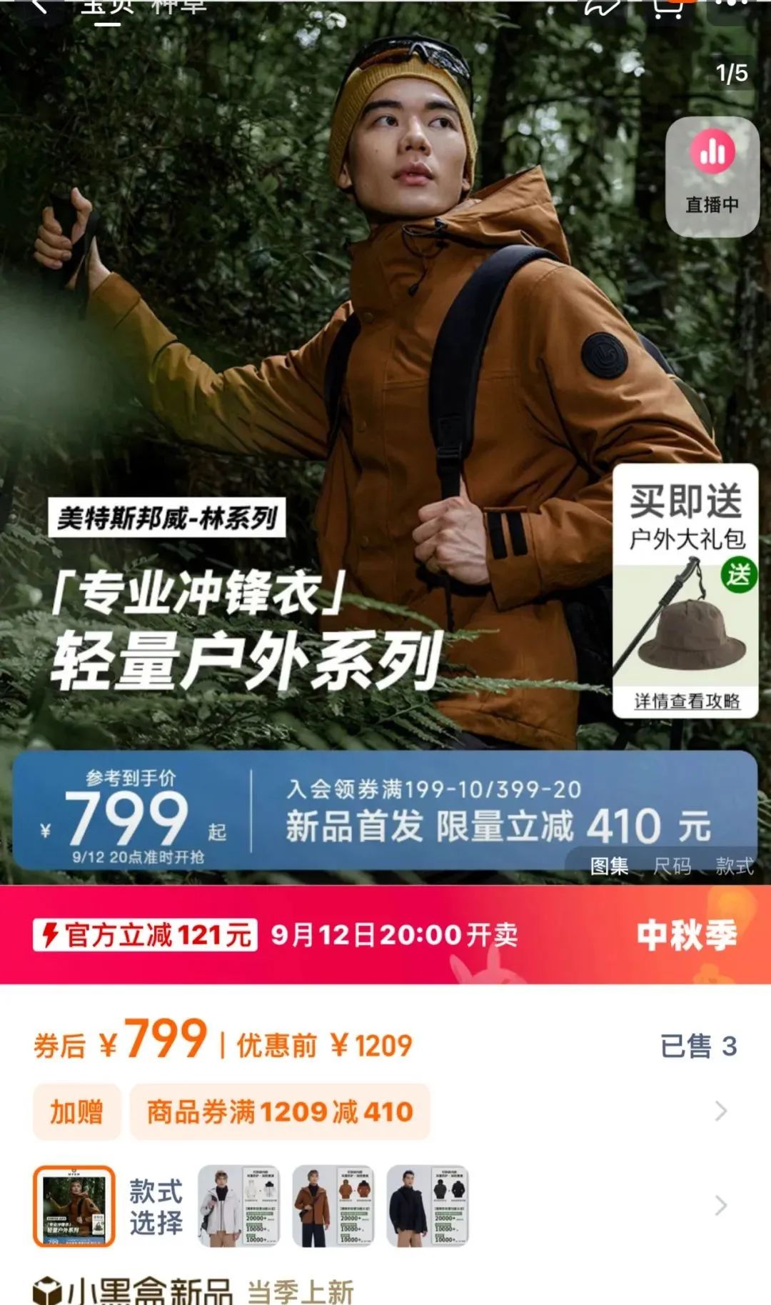 《聯(lián)商網(wǎng)》查閱美邦天貓旗艦店發(fā)現(xiàn),銷售最高的是一款售價(jià)39元的T恤,目前已售4萬(wàn)+,以「沖鋒衣」作為關(guān)鍵詞在店內(nèi)搜索,銷量最高的一款沖鋒衣為「林系列——青鸞」,目前已售200件,這或許意味著美邦在戶外還有很長(zhǎng)的路要走。