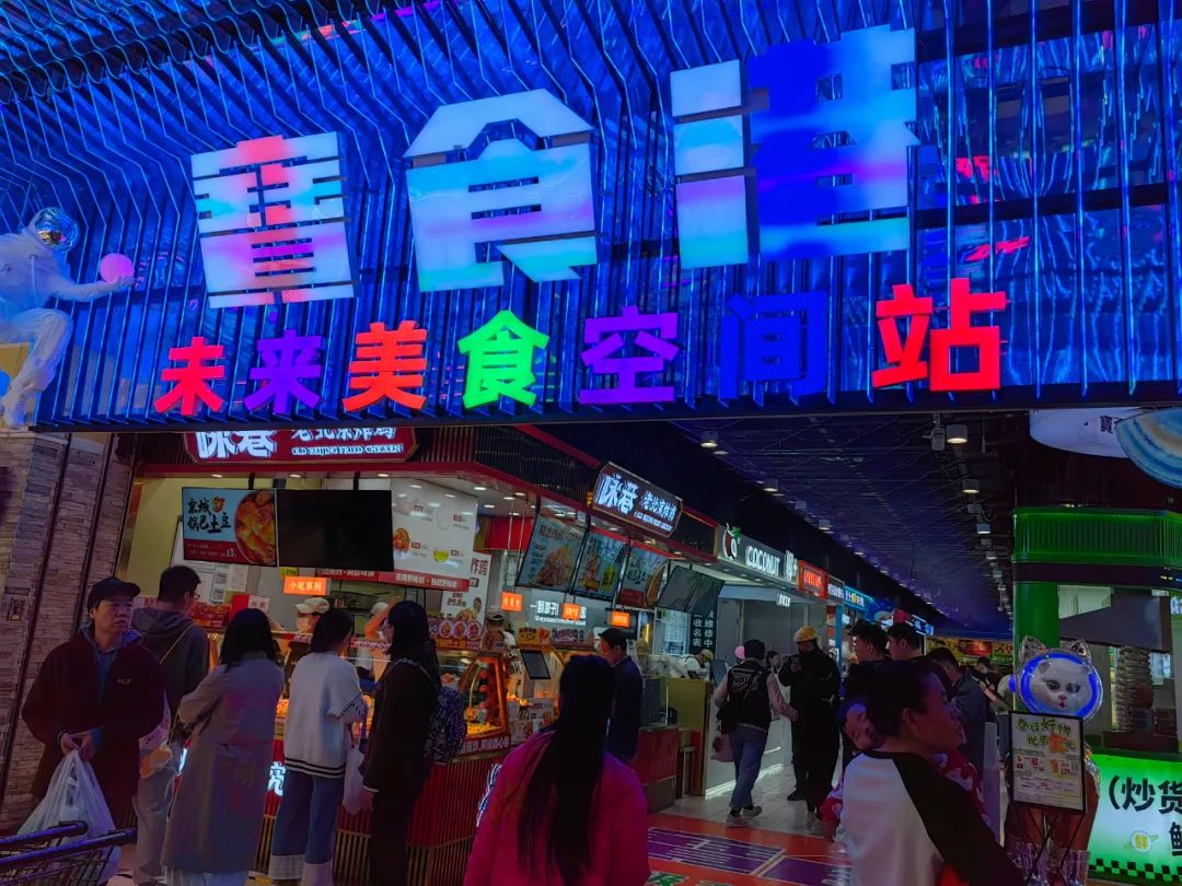 這里往往有30多元暢吃的“農(nóng)小鍋”,還有10元店巨頭“名創(chuàng)優(yōu)品”,三步一個炸雞店,五步一個蜜雪冰城。一種混合著麻辣燙、串串香、炸串、烘焙蛋糕等各種氣味的熱浪撲面而來。這是獨屬于年輕人的氣息,或者,不客氣地說,這種氣息帶給“都市窮鬼”們無限的歸屬感。
