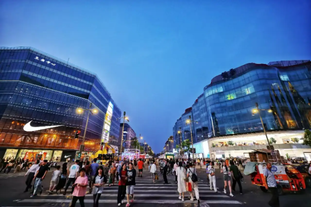 此時正值夏末秋初,這條北京的“地標型”商業(yè)步行街,匯聚了不少南來北往的游客。操著各地方言的家庭團、外國面孔的友人比比皆是。他們在繁華的商業(yè)氛圍和悠久的歷史底蘊中,腳踩四方磚,眼見霓虹亮起、燈光閃爍,頂尖奢華與古樸氣息交融,渲染了屬于皇城的夜色朦朧。
