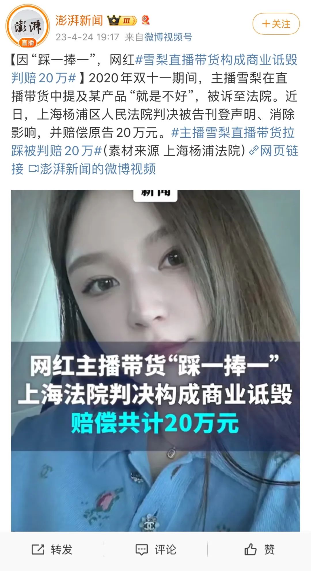 無(wú)獨(dú)有偶,前不久因被人造謠而重新引發(fā)關(guān)注的知名帶貨主播雪梨,也曾因類(lèi)似行為被推向風(fēng)口浪尖。