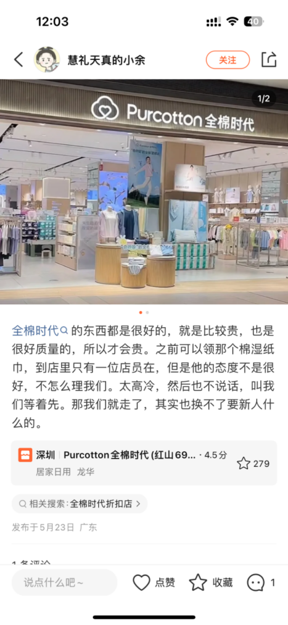在大眾點評搜索“全棉時代”,有不少筆記都覺得該品牌產(chǎn)品不錯,就是價格偏貴。