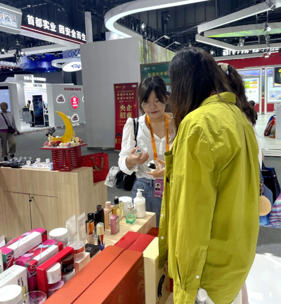 此外,還帶來了有“北京有禮”形象露出的老字號禮盒,將老字號產(chǎn)品進(jìn)行再組合、再創(chuàng)意、再包裝,以及項(xiàng)目與老字號聯(lián)名共創(chuàng)的產(chǎn)品——“北京有禮&京華-中軸茶書”“北京有禮&京華-飄雪袋泡茶”“北京有禮&百花-檸檬蜂蜜水”等,滿足各類消費(fèi)人群的北京城市級伴手禮需求,吸引眾多觀眾駐足。